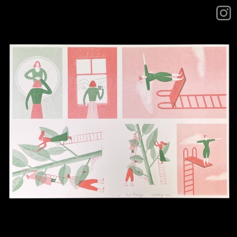 *Risography is a stencil-based printmaking method using the Risograph printing machine. Colours are printed one at a time, with results that are eye-catching, vibrant, and unique.